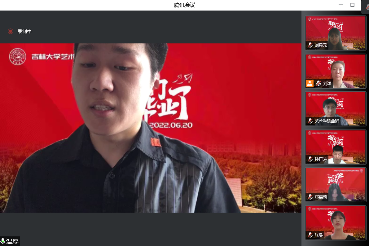 院长郭春方教授致词。他以《文以载道艺以弘德》为题,从三个方面与毕业学子分享关于艺术与人生追求的思考,作为母校为同学们准备的最后一份“毕业礼物”。一是文艺创作,要为时代放歌。文艺是时代前进的号角,文艺创作只有植根现实生活、紧跟时代潮流,才能真正做到思想精深、艺术精湛、制作精良。疫情暴发以来,全院师生创作了系列以抗击疫情为主题的优秀作品,讲述着我们身边的抗疫故事。文艺最能代表一个时代的风貌,也最能引领一个时代的风气。在以“艺”抗疫的征途上奋勇向前,在前所未有的困境中携手前行,共同感受着党和国家在抗击灾难时所爆发出的巨大能量,力尽所能地肩负起吉大人的使命与担当。二是文艺创作,要扎根祖国大地。当代的中国文艺,是包含艺术哲学与精神内涵的时代产物,是反映中华民族精神面貌与审美趣味的文化沉淀,是能够服务于国家需求并引领结构创新的艺术符码。需要在复杂的时代价值环境中,注重全球共识性与民族个性的融通,注重中国语境与国家文明的坚守。扎根祖国大地,发出中国声音,讲述中国故事,扩大“中国艺术”的影响力,是每一名文艺工作者义不容辞的使命与责任。三是文艺创作,要回应民之关切。“中国艺术的生命精神,就是一种以生命为本体,为最高真实的精神”。艺术的真实来源于生活,并对其进行提炼和萃取。文艺工作者的世界观决定了创作过程中的立场、态度和情感。修辞立其诚,艺术之路上,思想的高度、文化的传承、科技的创新,都离不开以人民为中心的创作导向。正如七十六载来,吉大以毫不利己、专门利人的白求恩精神;以一路向北、扎根东北的“北上精神”;以心有大我、至诚报国的黄大年精神,为国家的发展、民族的振兴、社会的进步作出了巨大的贡献。