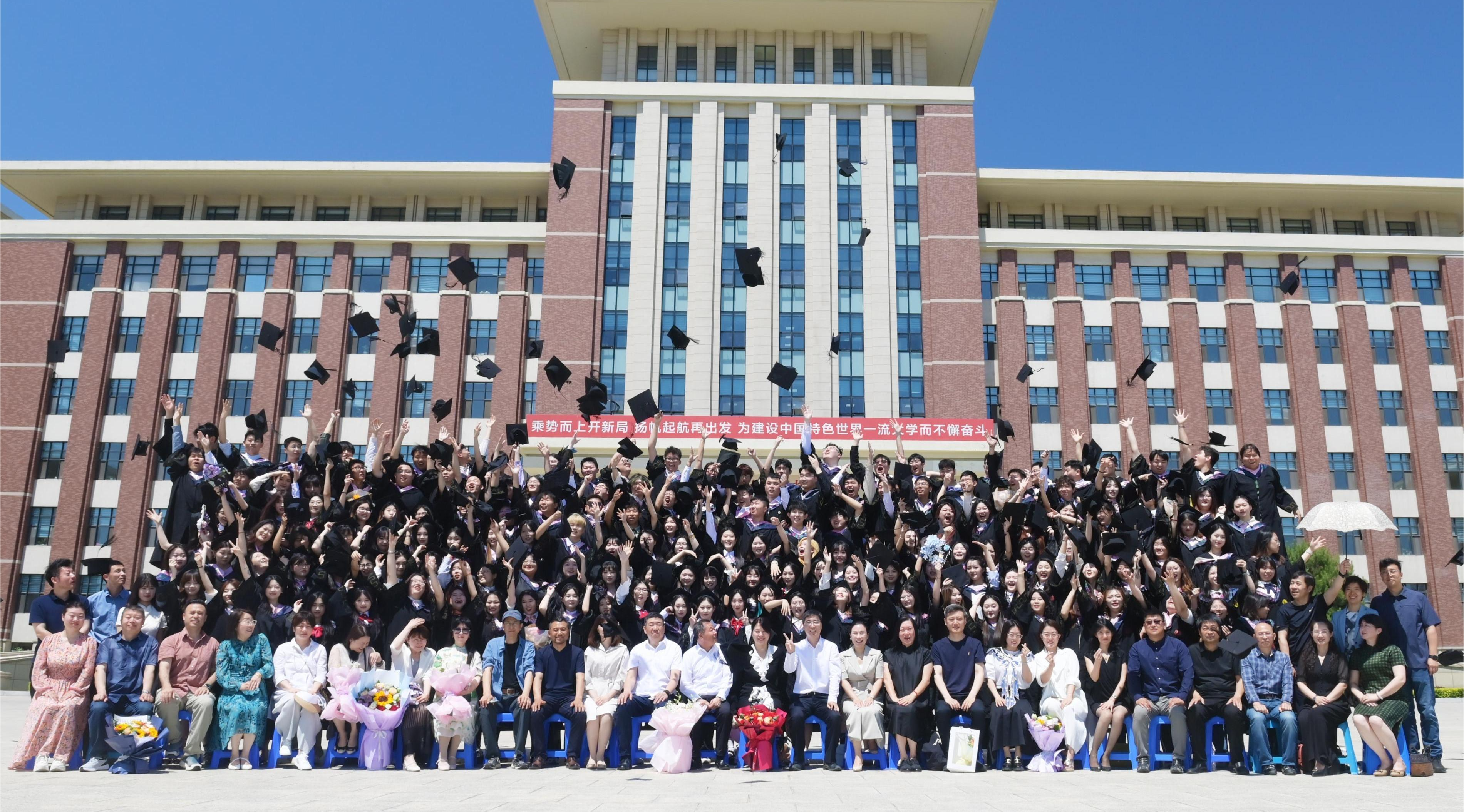 20余名导师代表作为主礼教授见证毕业生授予学位。学位授予仪式结束后,全体师生来到鼎新楼南门外广场拍摄毕业合影。