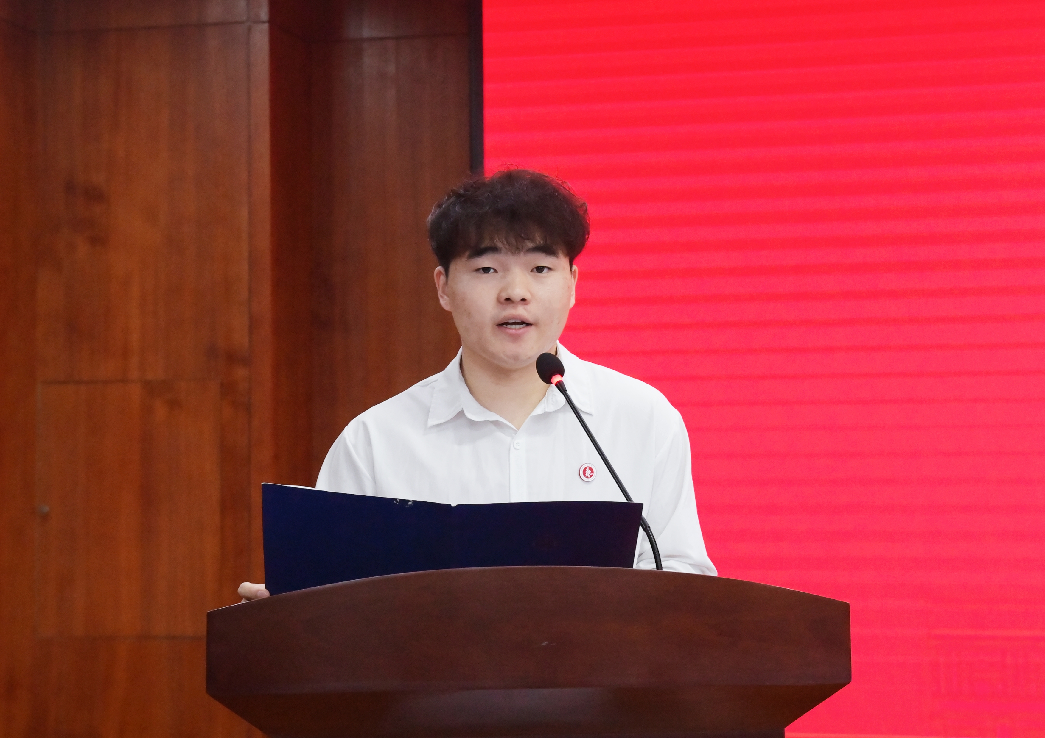 在校生代表2021级设计系陈正康同学发言,他代表学院全体在校生向即将毕业的学长学姐们表达了最衷心的祝贺和最真挚的祝福。他祝愿学长学姐们在人生的航程中,毫不畏惧、大步向前,带着美好祝福去拥抱未来,在自己所热爱的领域里闪闪发光,再绽新芒;能够不忘初心,保持航向,用勇气和智慧驾驭每一次波涛。