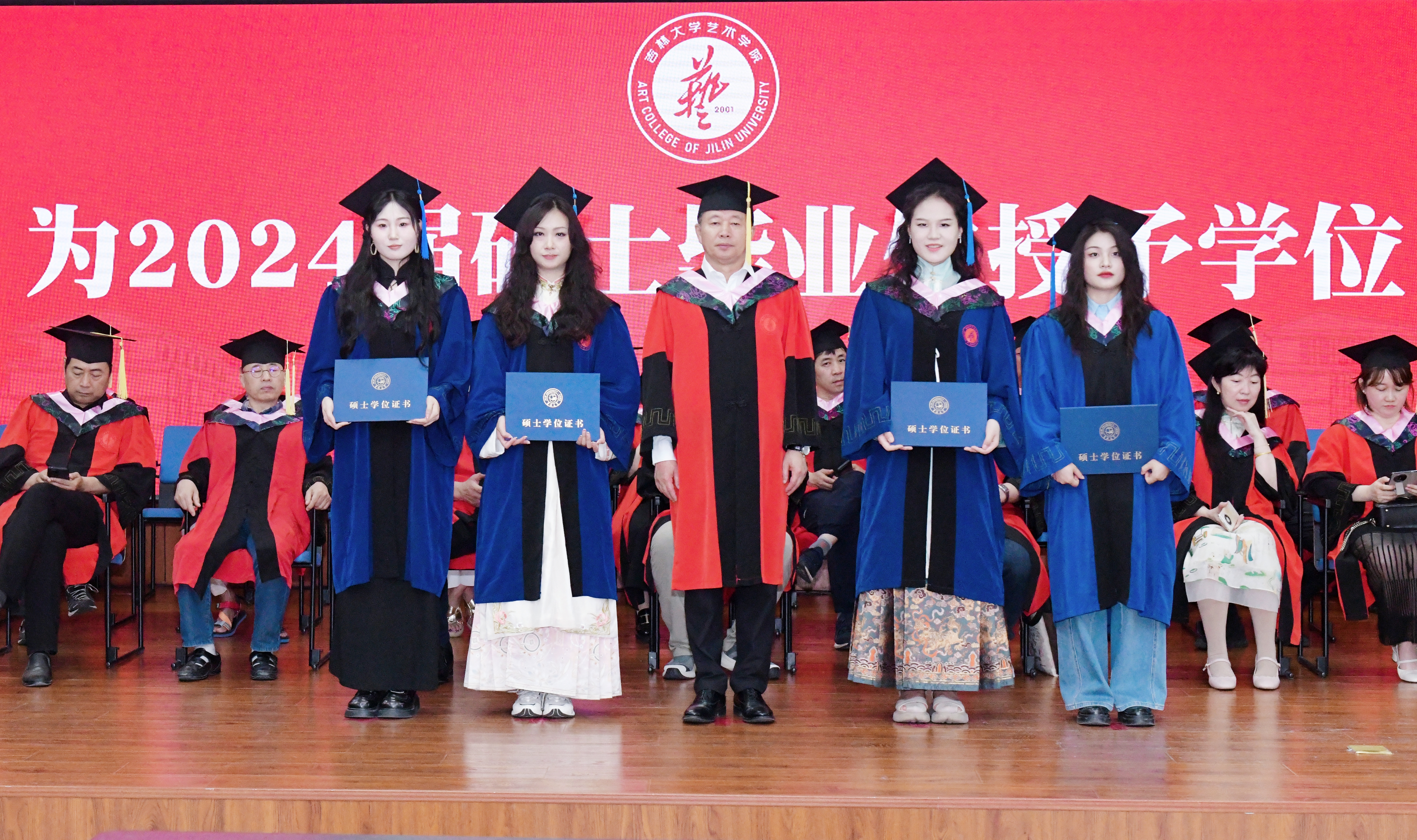 学位授予仪式上。主礼教授郭春方院长为毕业生颁发学位证书;副院长王月颖教授、郑海标教授、吕净植教授为毕业生拨动流苏。色漫网