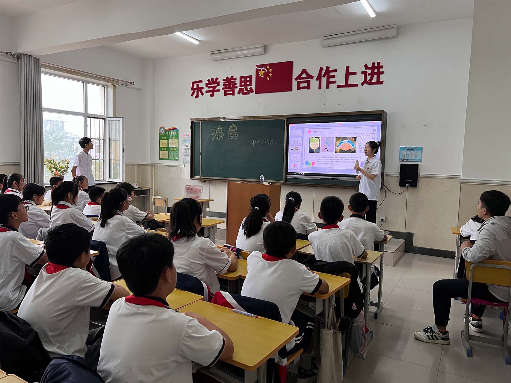 7月3日,由齐志峰、姜宝涛、苏佳星、李忻芮组成的初中美术组,张咏怡、高一赫、任青宇、石宇佳组成的初中音乐组前往通榆县兴隆山镇第十中学开展实践活动。活动中,志愿者首先讲述了声乐演唱技巧、歌唱基础等音乐常识,并对民族音乐——二胡进行了细致介绍。学生们积极参与,表现出浓厚的兴趣。在声乐演唱技巧课堂上,学生们跟随志愿者的指导,认真学习发声方法和演唱技巧,欣赏二胡演奏。在随后的美术课堂中,志愿者们着重介绍了漂漆工艺的发展源流及技术要点,学生们聚精会神地听讲,就漂漆工艺的原理和技巧提出问题,志愿者耐心解答,帮助他们理解和掌握相关知识,随后同学们亲手进行了手工漆扇制作,进一步深化了同学们对非遗文化的了解。