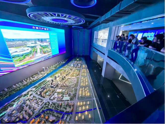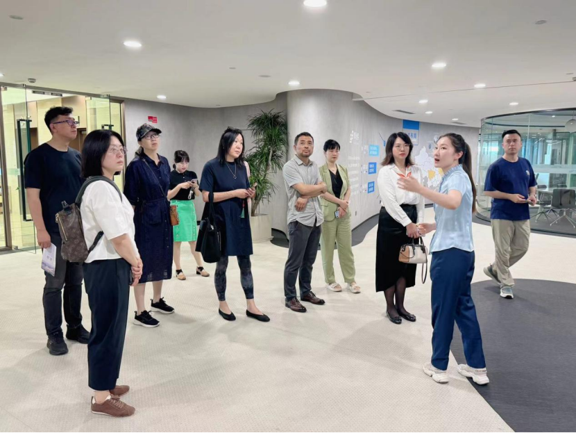 (水木湾科创园接待员向我院教师介绍园区)