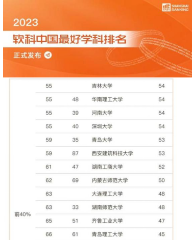 图2 2023软科排名中学院设计学科排名前40%的第一名