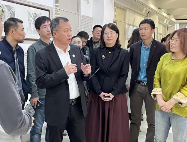郭院长详细观看每件参展作品并对此次教学实践活动给予充分肯定,这次考察写生,丰富了教学内涵,拓展了教学方式,促进了理论与实践相结合,激发了学生创新思维,培养了独立探索精神。此次展出的美术作品作为实践成果,期待大家品鉴,共同感受太行与宏村之美以及学生的成长与感悟。