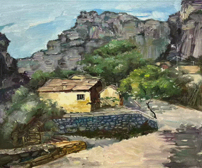 写生期间,师生先后前往猪叫石、画家村、井底村、太行大峡谷、红旗渠等地进行实地创作。太行大峡谷汇聚了峰峦叠嶂、幽深峡谷与丰富植被,形成了强烈的视觉张力;而散布于山间的传统石屋、古道以及红旗渠、“扁担精神”纪念展馆等红色地标,则为人文写生与思政融合教学提供了深层素材。