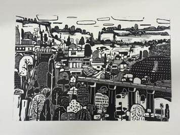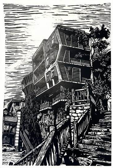 版画专业学生则利用版画语言的黑白对比与肌理效果,表现石板岩地貌的节理结构与村落建筑的几何形态,拓展了风景表达的形式边界,体现了美术系在艺术语言探索上的前沿性。