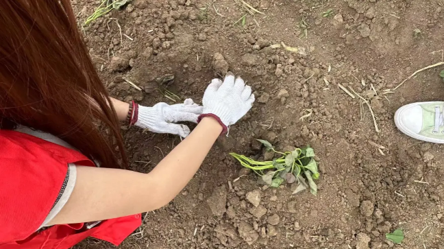 到达基地后,师生仔细学习种植技巧。经工作人员指导,分组前往劳动区域开展挖坑、浇水、间苗、培土等劳动,在田间地头种下地瓜,体验大田作物种植。此次劳动实践让学生走进“田间”课堂,在劳作中开阔视野,收获知识。在种植中感受劳动艰辛,锻炼意志品质,提升劳动技能。同学们发扬不怕苦、不怕累的精神,积极投入到各项劳动中。